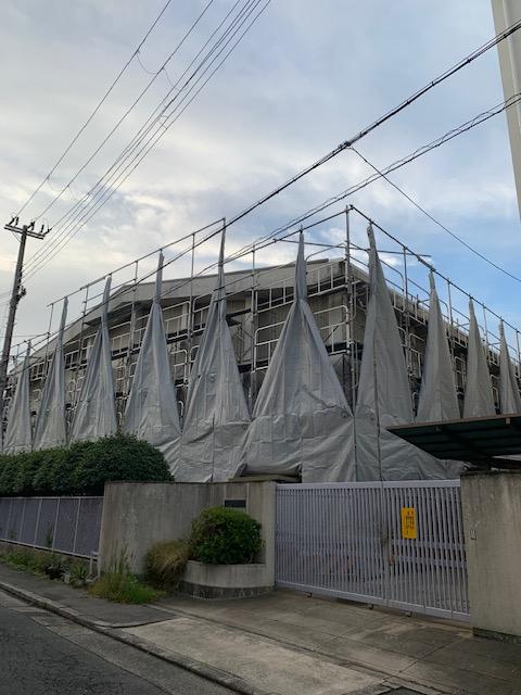 某小学校の体育館改修工事に伴う仮設足場工事です。