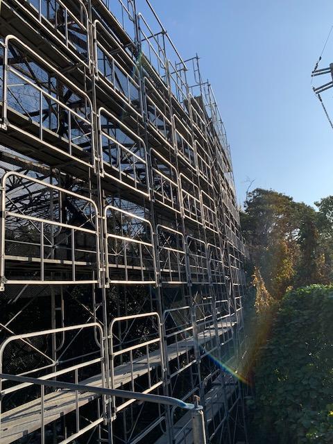 看板改修工事と言う事で、資材置場の設置から作業区画の仮囲い、作業棚足場と様々な仮設工事を行います。